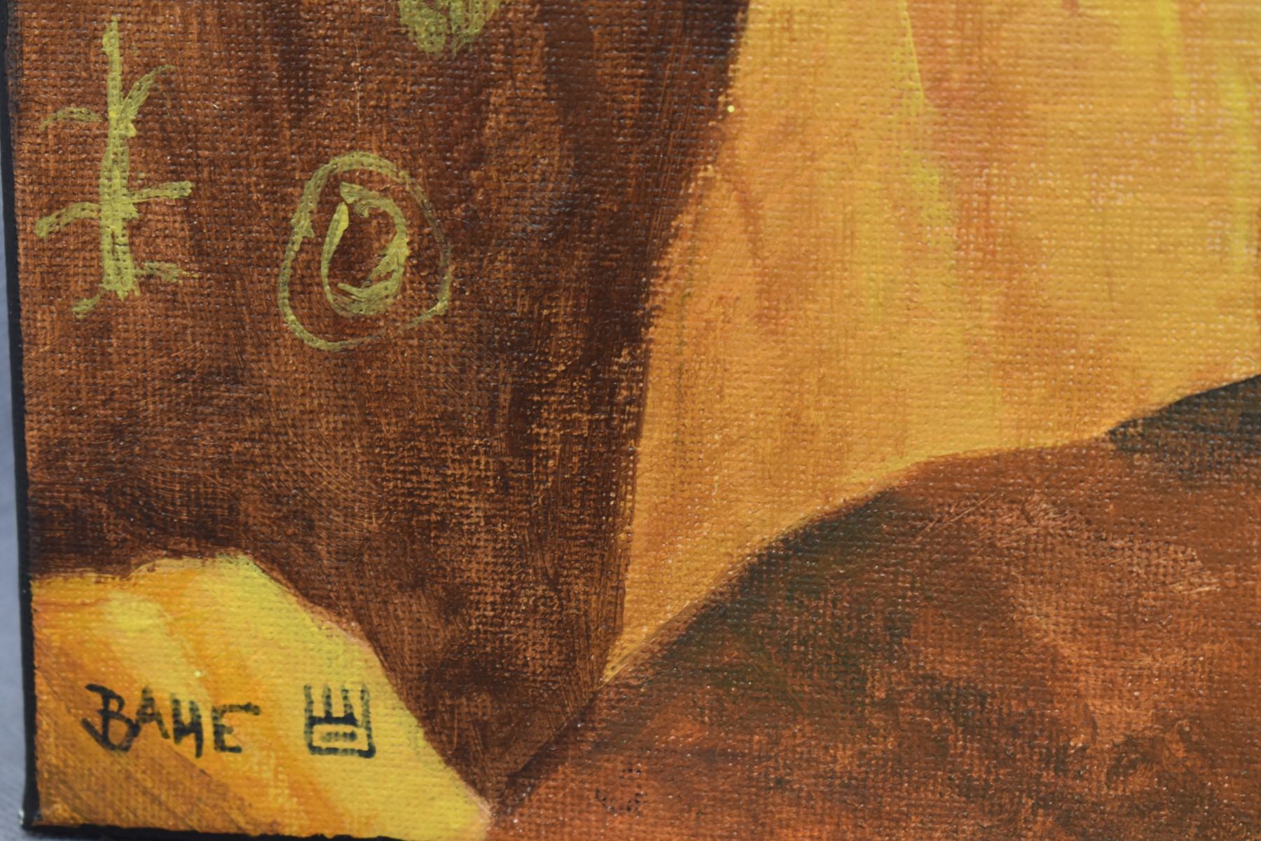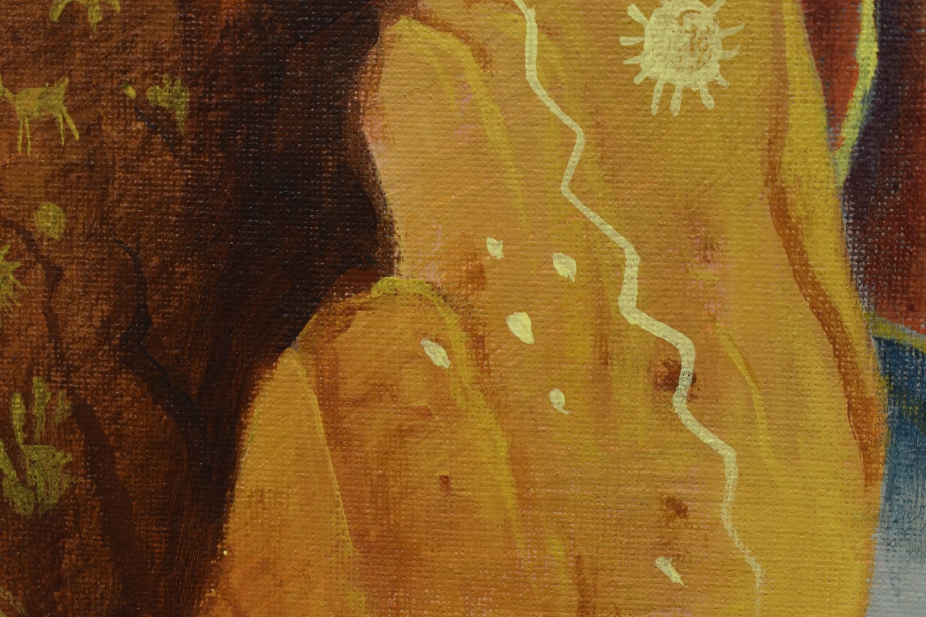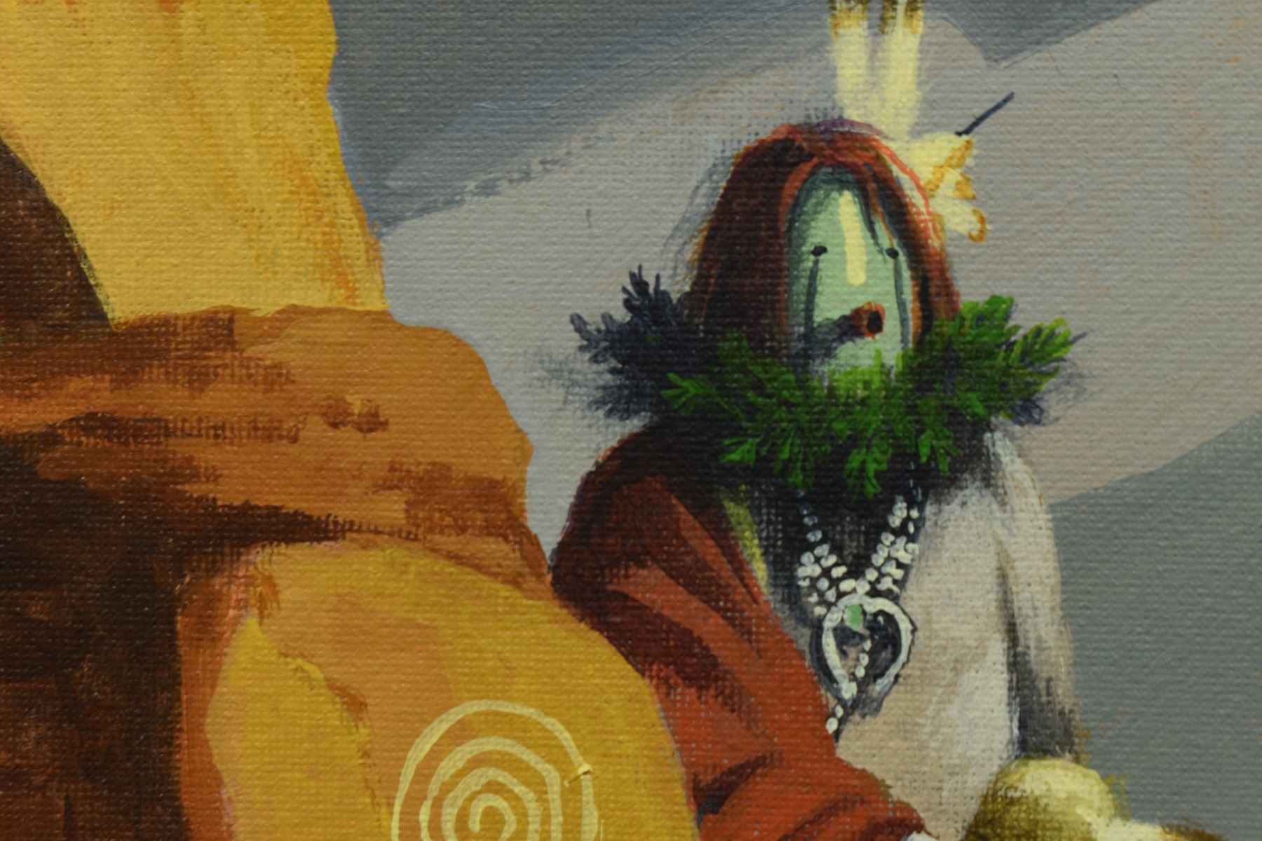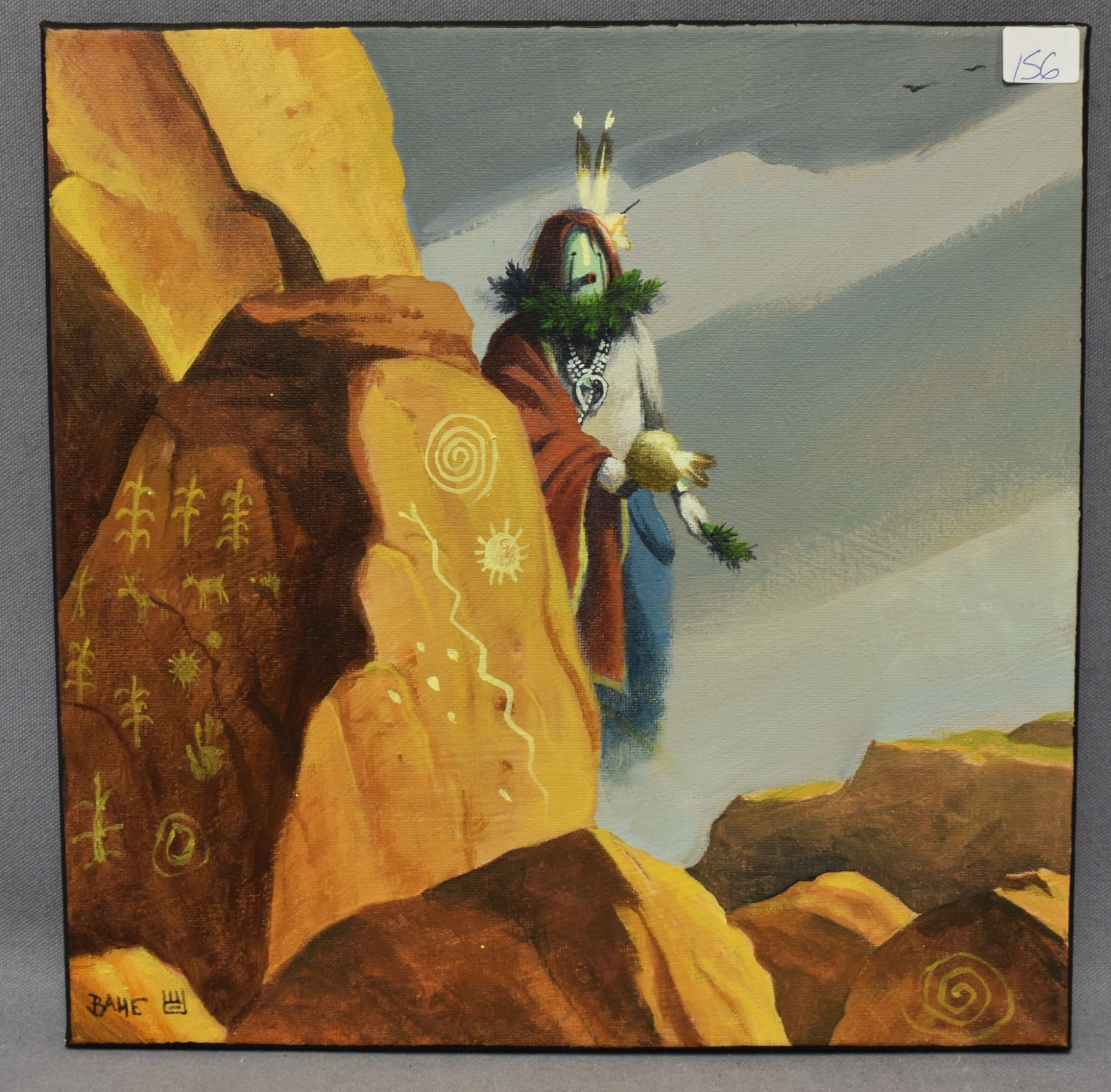 2000's Navajo Indian. Original on canvas depicting Navajo Yei, signed Bahe, 12'' x 12''