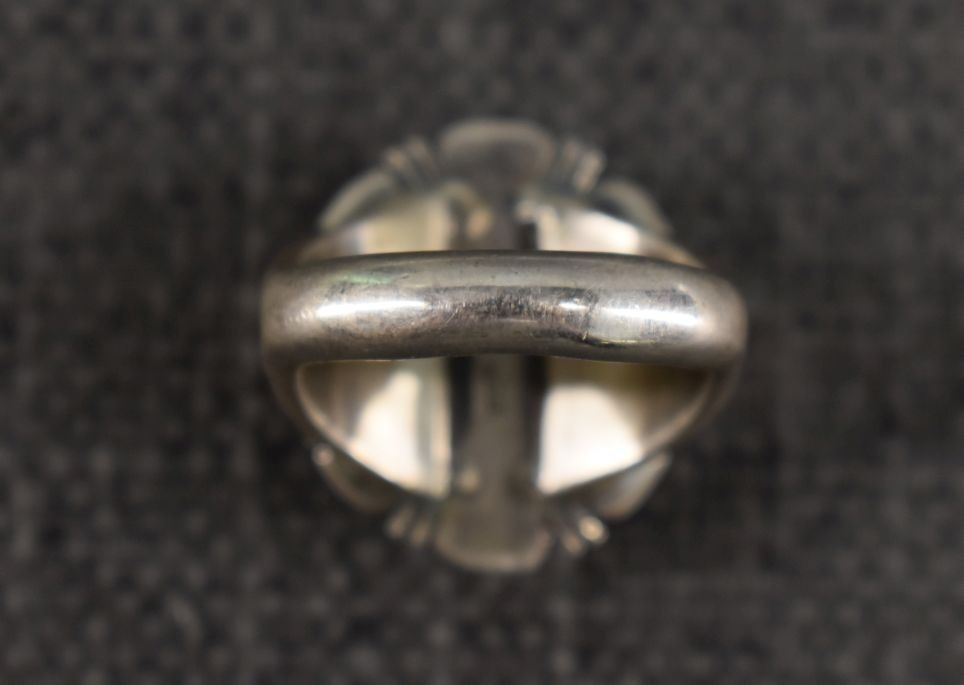 1980-90's Navajo Indian hand made sterling silver and turquoise with stamped design signed F.C. size 13 total weight 22 grams