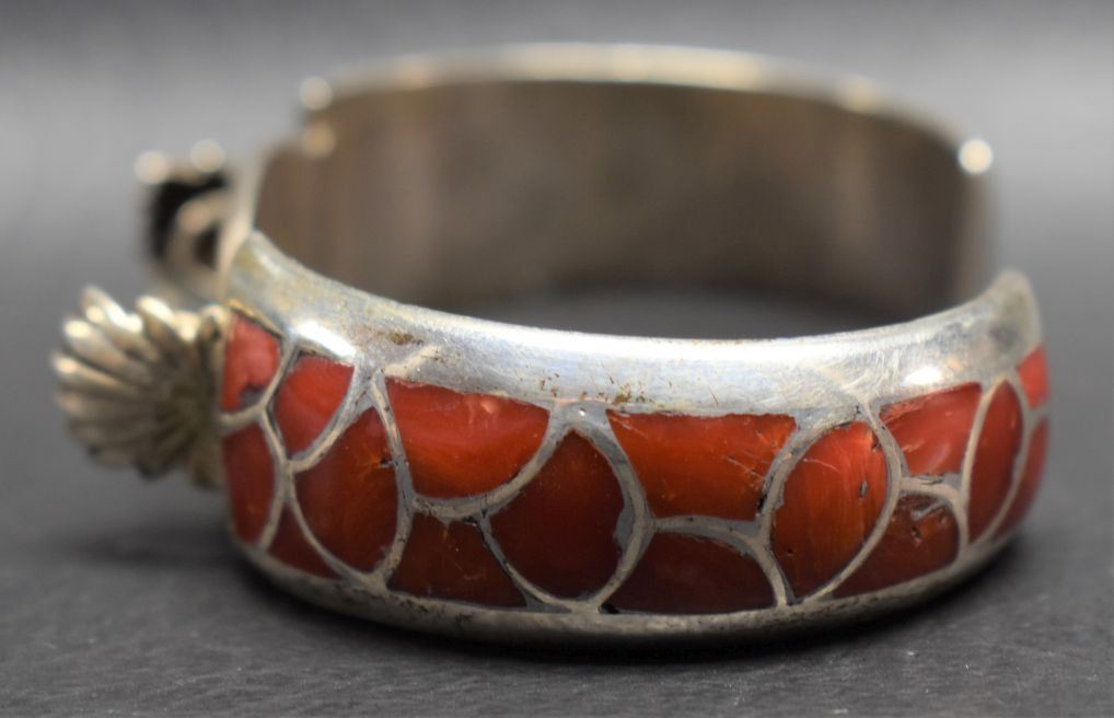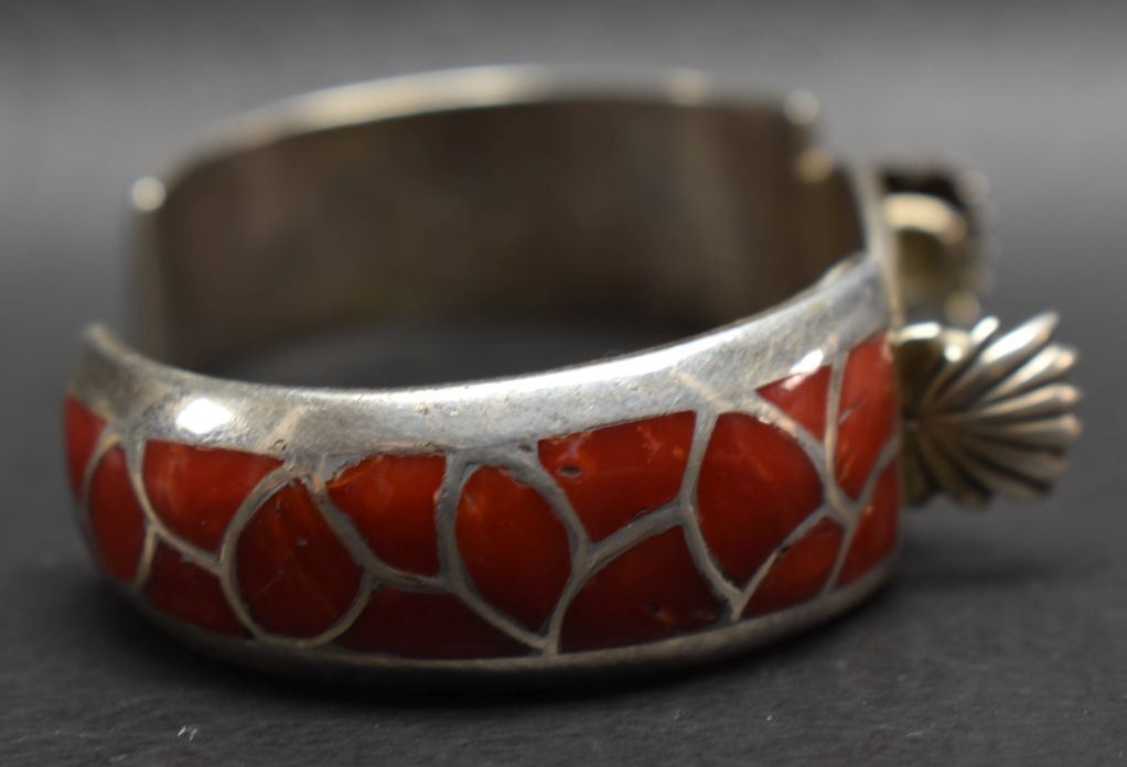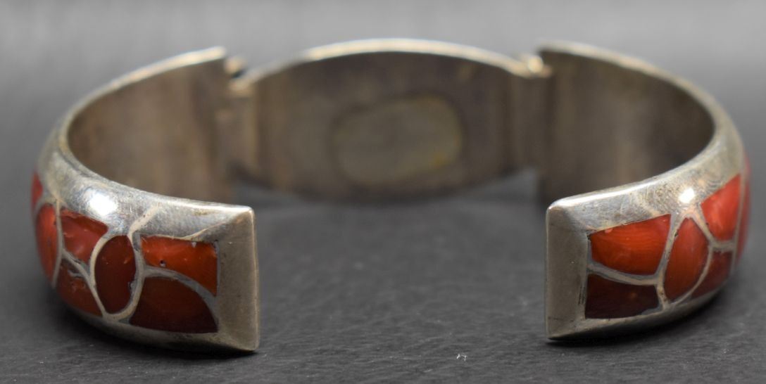 1970's Navajo Indian. Sterling silver and coral watch bracelet .75'' x 5'' x 1'' total weight 39 grams