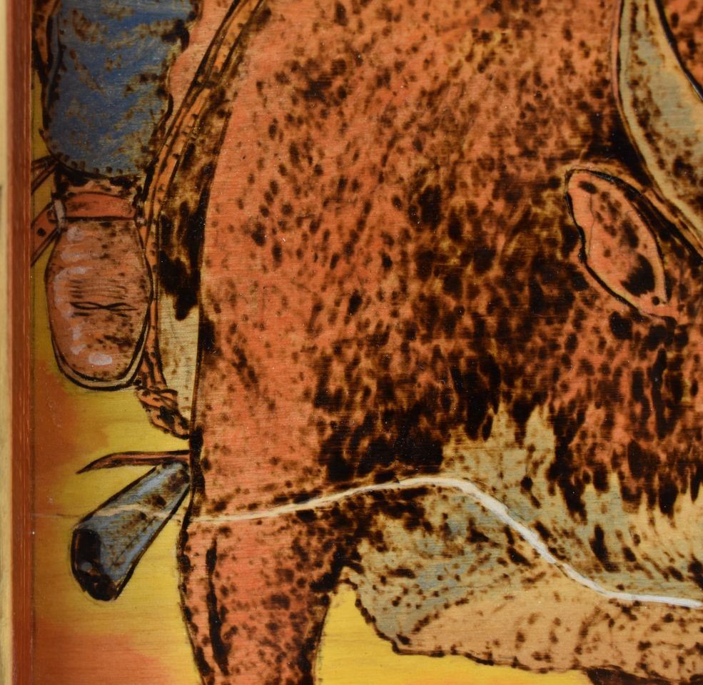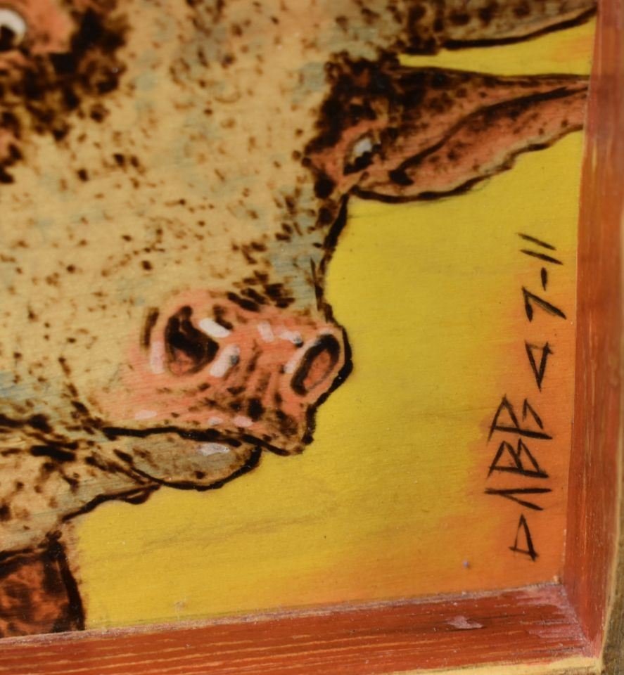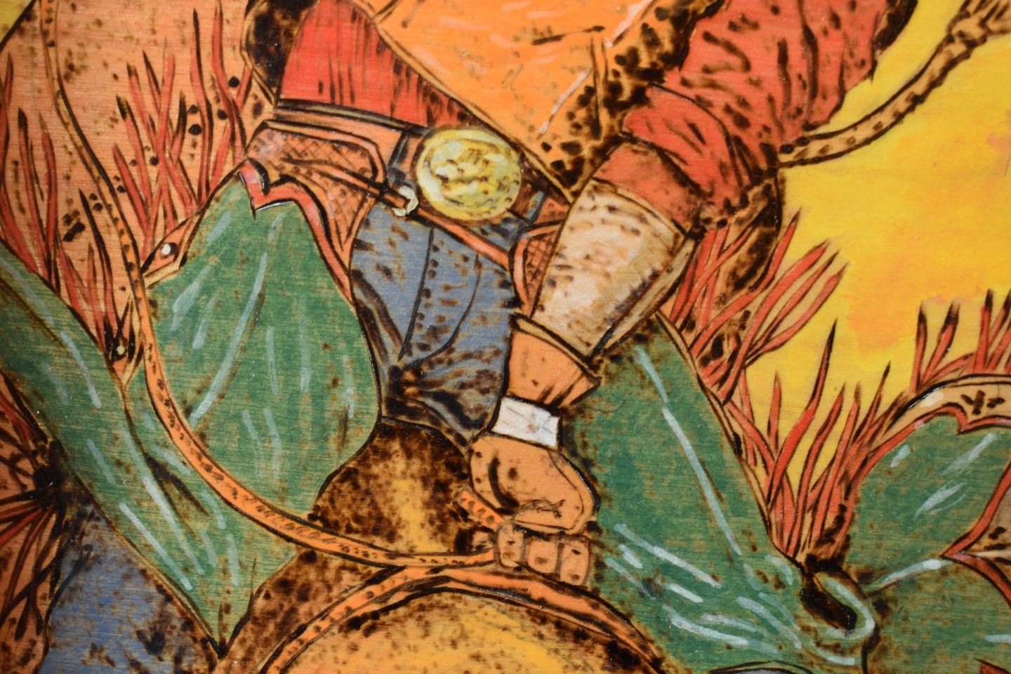 2011 Navajo, original hand painted on wood depicting bull rider signed ABB for Ambrose Begay 13.5" x 8" framed to 16.5" x 11"