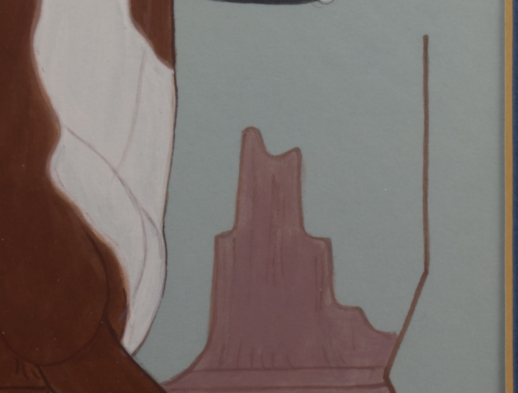 1980-90's Navajo. original hand painted on paper depicting Indian on horse back, signed Charlie Begay. 13'' x 10'' frame size 23'' x 19''