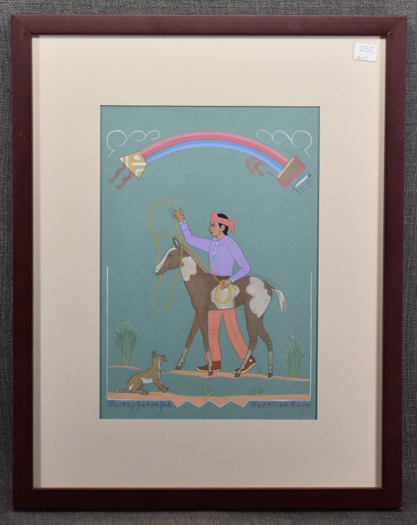 1960's Navajo. Original on artist board depicting native boy and foal. Signed Harrison Begay. 12'' x 8'' matt 19'' x 15''