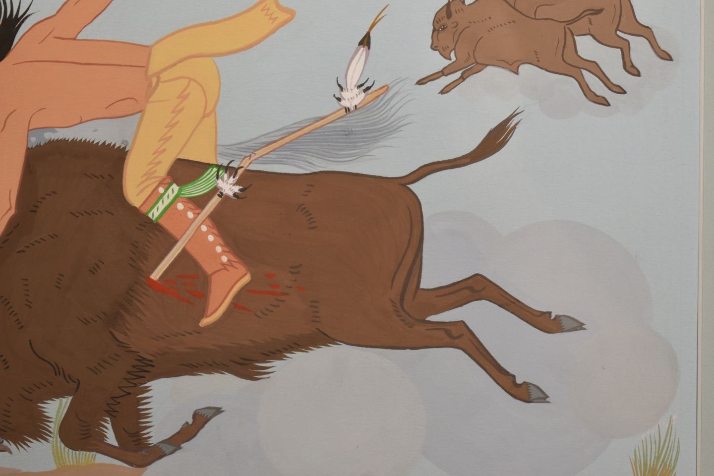 1970-80's Navajo, original hand painted depicting Buffalo hunt by Harrison Begay 15.5" x 19.5" matted and framed to 24" x 28"