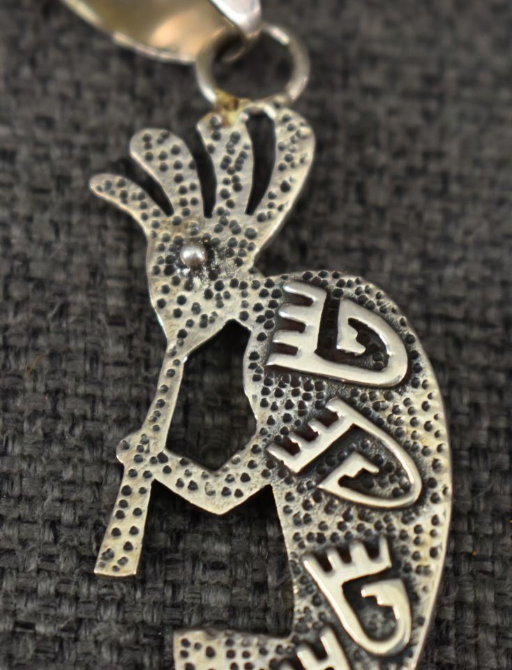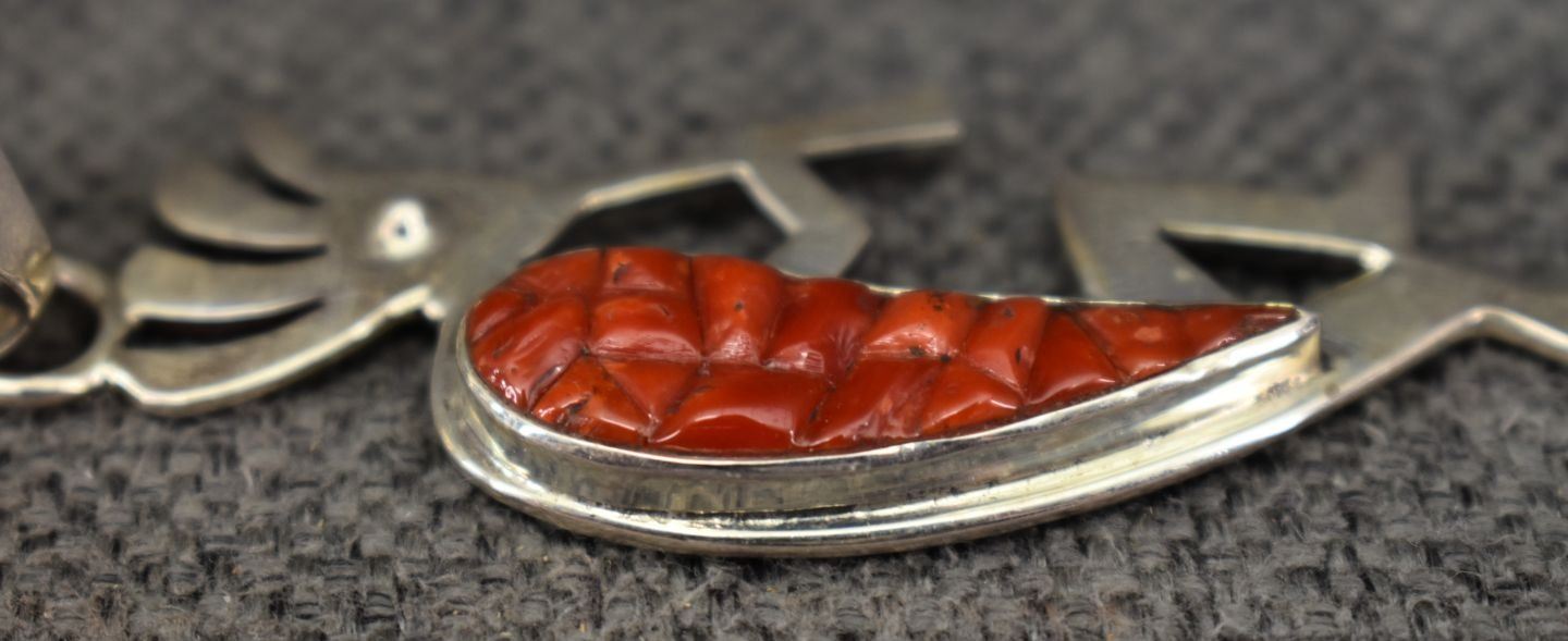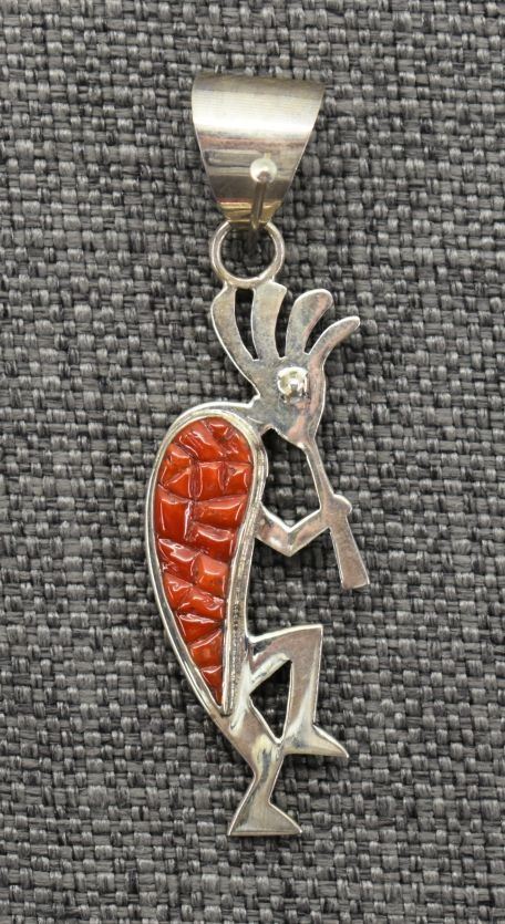 1980-90's Navajo, sterling silver double sided design with coral and stamped design 3" x 1" total weight 17 grams
