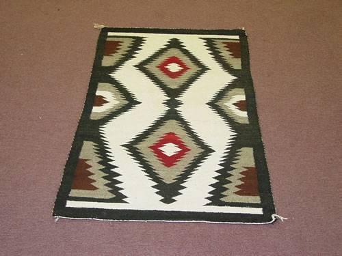 NAVAJO RUG-TRADITIONAL SERAPE DESIGN (4'3" X 2'5") - WEAR & IMPERFECTIONS;