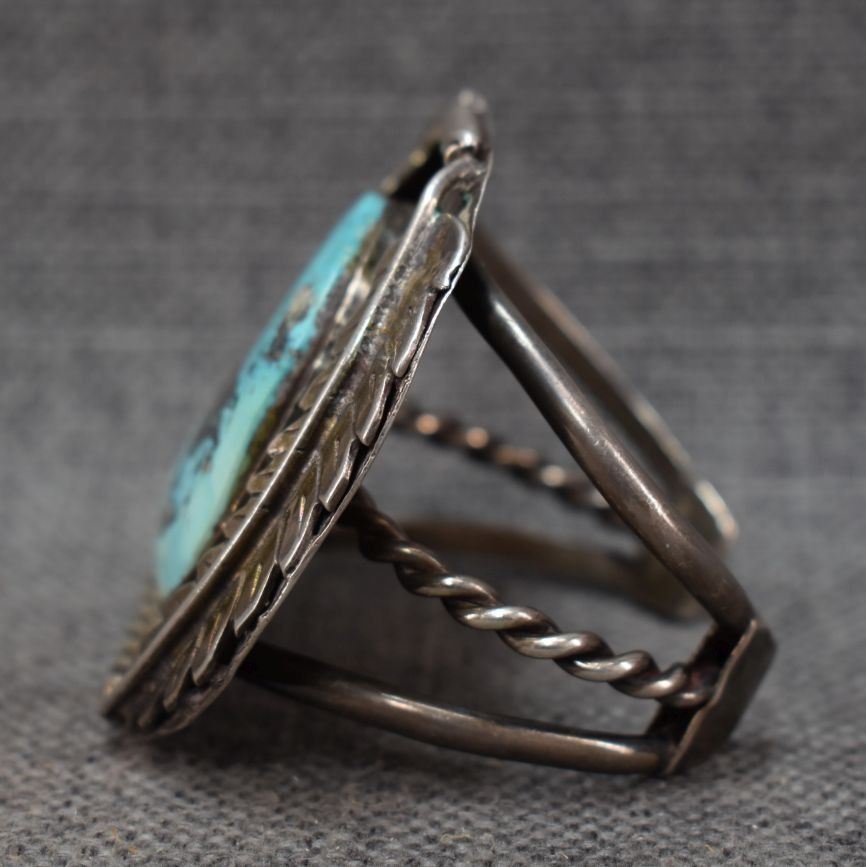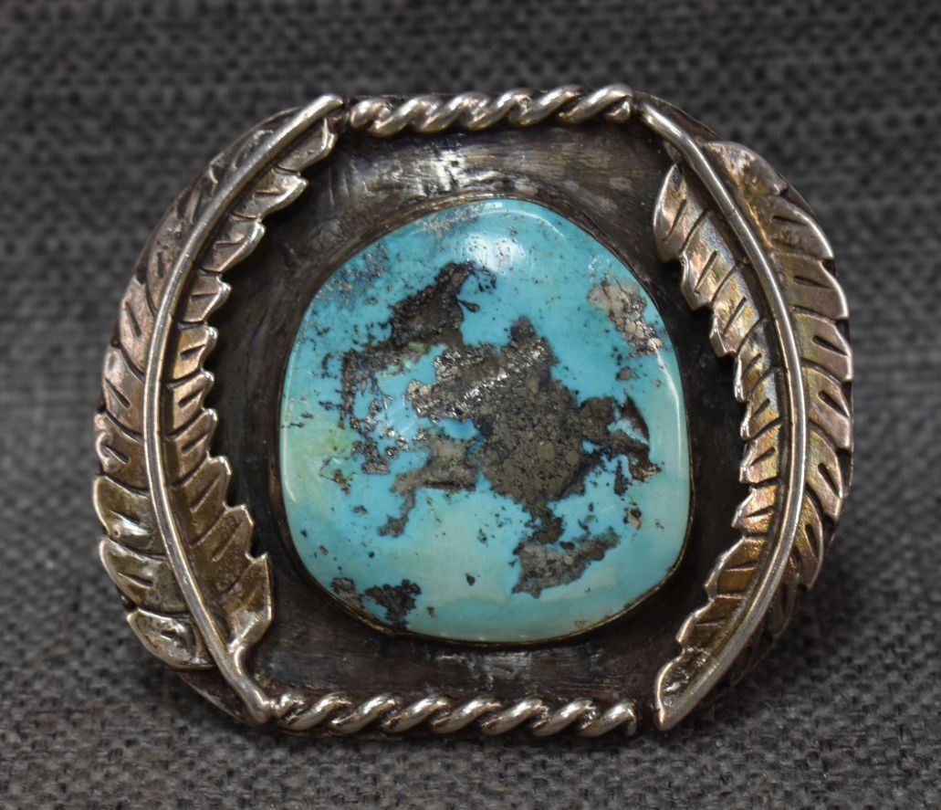 1970's Navajo Indian hand made sterling silver with turquoise stone 2.5" x 5" x 1.25" total weight 106 grams