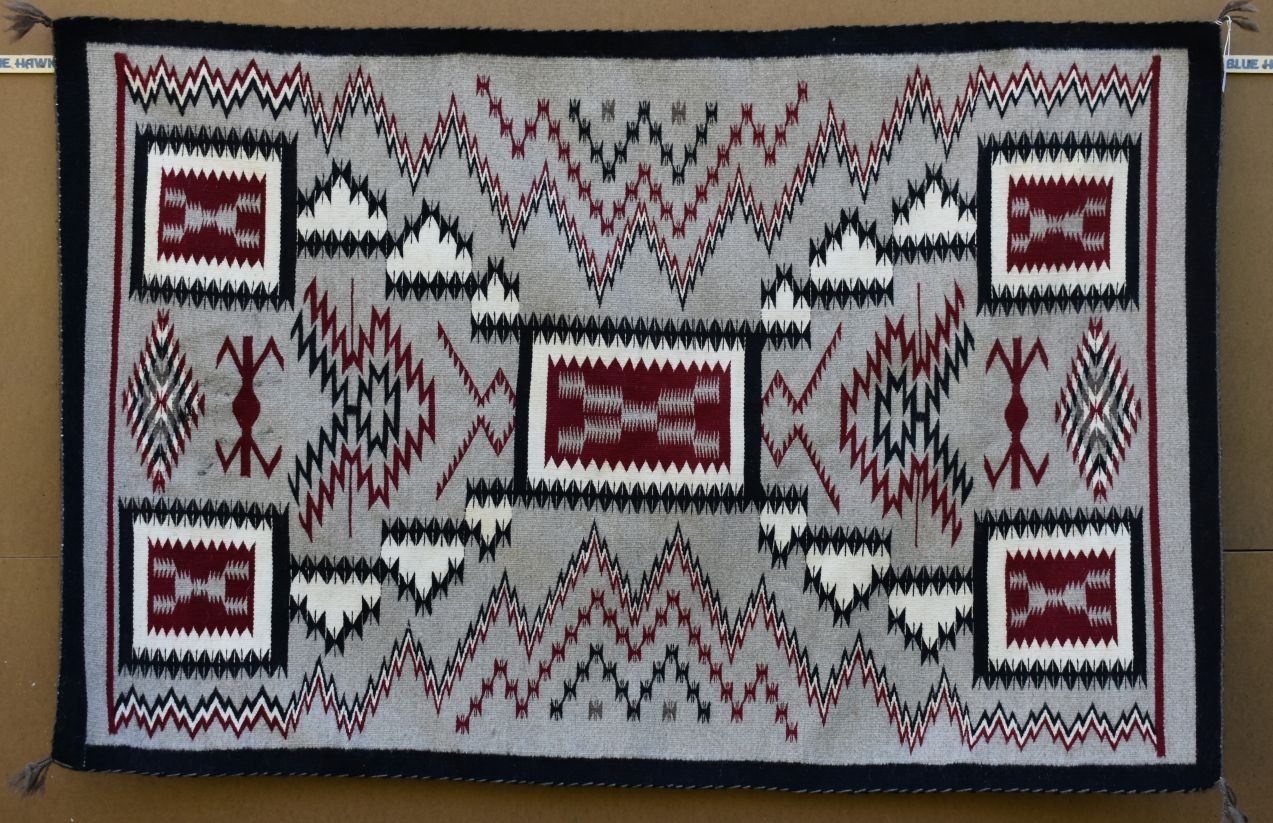 1980's Navajo. Hand woven busy design textile 60'' x 39''