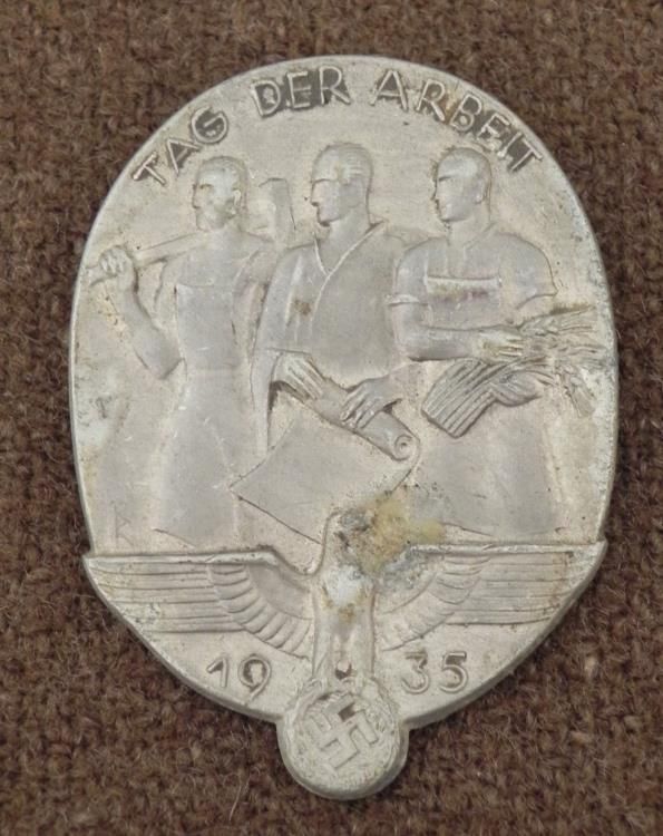 NAZI 1933 TAG DER ARBEIT MEDAL-SHOWS EAGLE/SWASTIKA & WORKERS-MARKED * * BACK" O & B--HANAU *