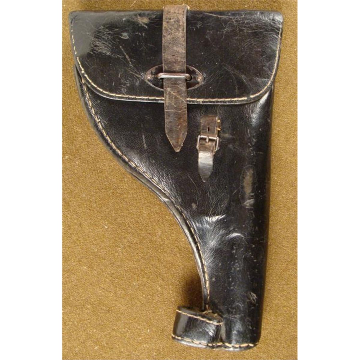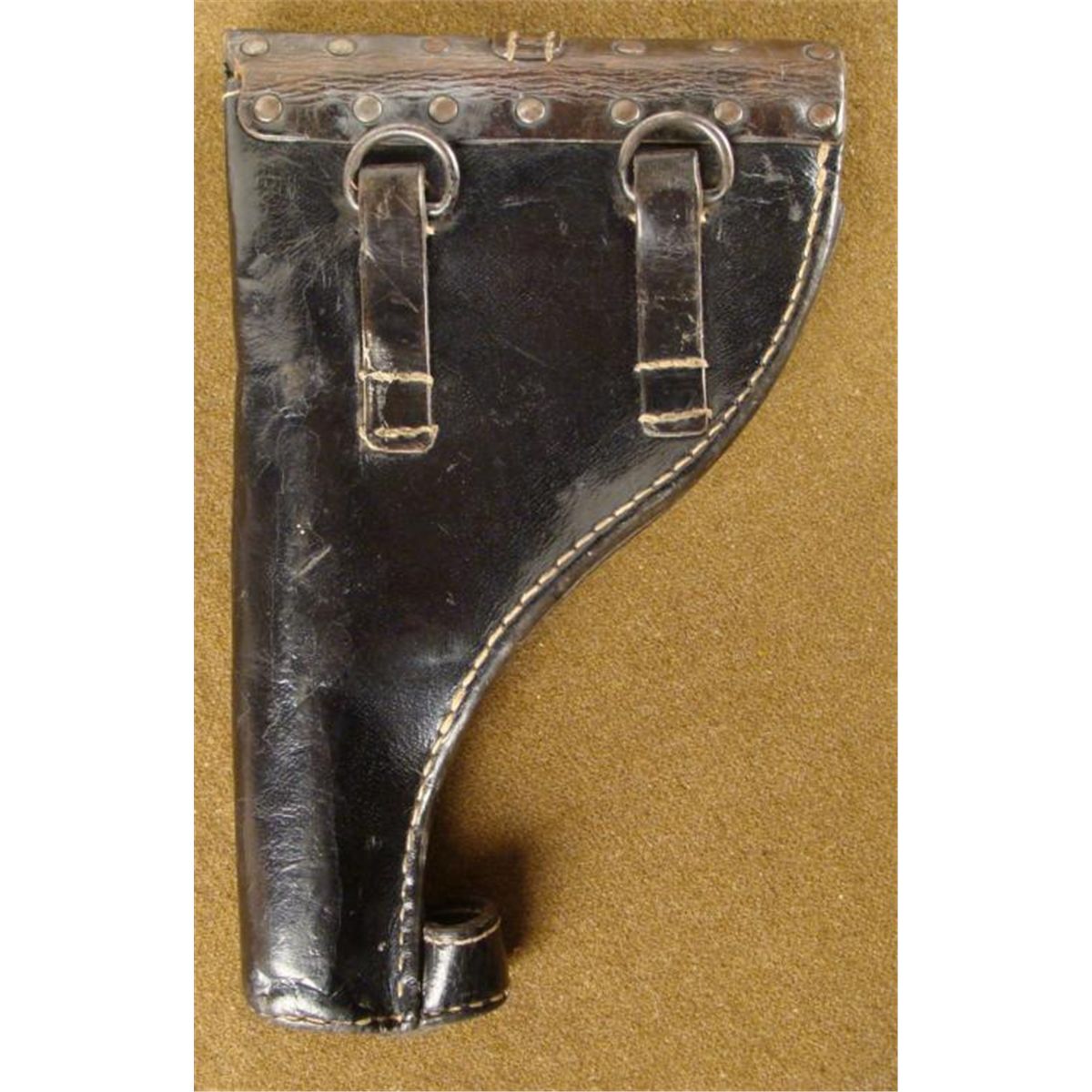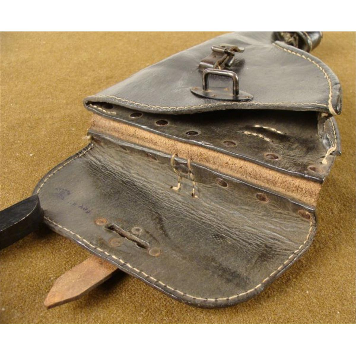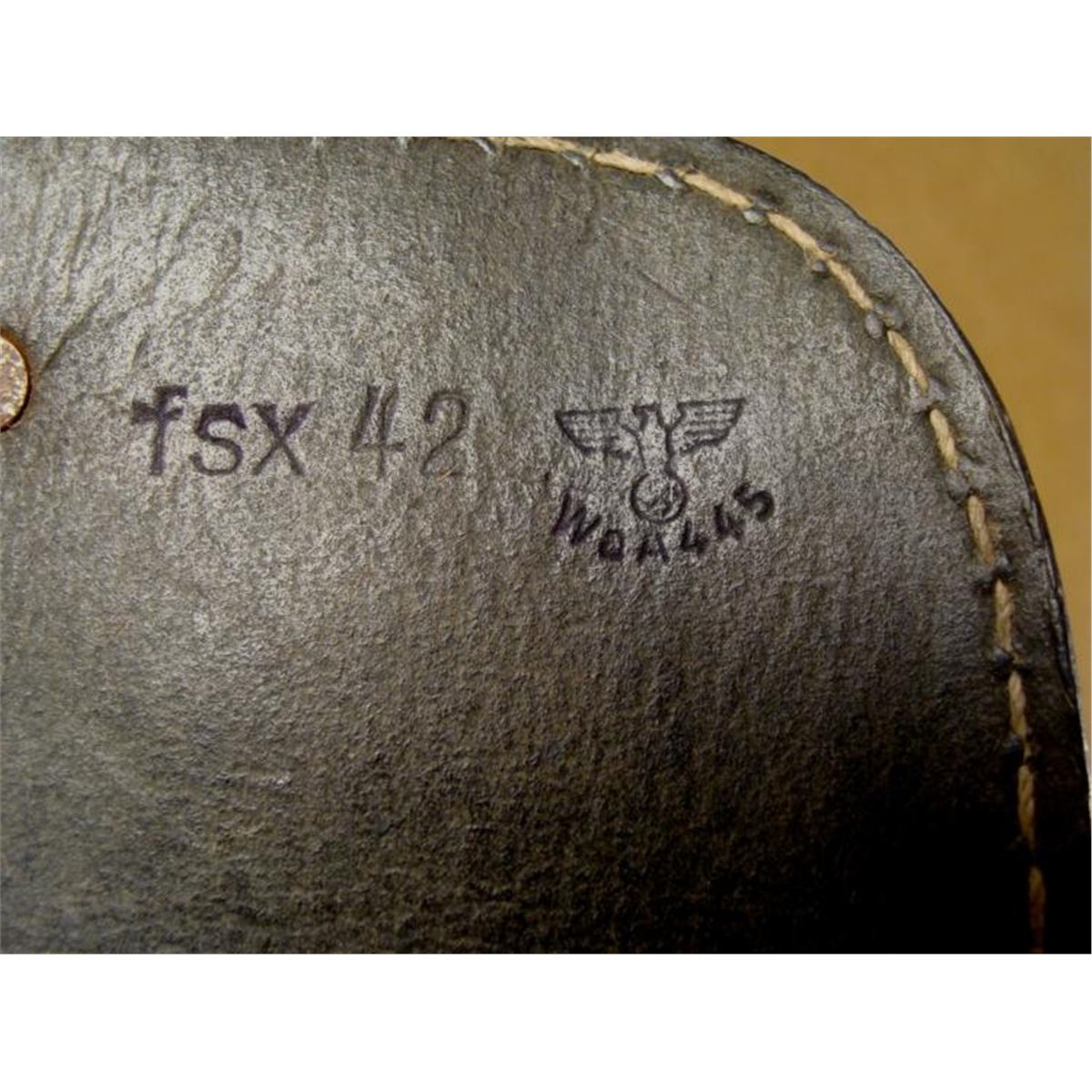 NAZI 1942 FLAIR GUN HOLSTER-BLACK LEATHER-MARKED FSX42-WAFFEN WAa445 W/EAGLE & SWASTIKA * GREAT ORIGINAL NAZI BRINGBACK BY AN ETO VET--LARGE HOLSTER FOR SINGLE SHOT FLAIR GUN--BOTTOM POCKET WOULD HOLD ROUND END OF CLEANING ROD--UPPER BUCKLE HOLDS ROD IN PLACE -LEATHER IS IN NICE CONDITION-BACK HAS BUCKLE STRAPS AND RINGS *
