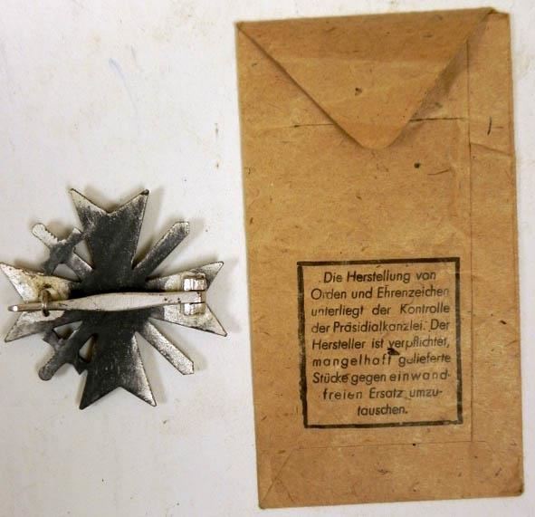 HERE IS A NAZI 1ST CLASS WAR MERIT CROSS W/SWORDS IN ORIGINAL "LDO" ENVELOPE. THIS IS A GREAT SET OF 1ST CLASS WAR MERIT W/SWORDS & ISSUE ENVELOPE--ENVELOPE "LDO" WITH NAME & 1939 WRITTEN ON IT.