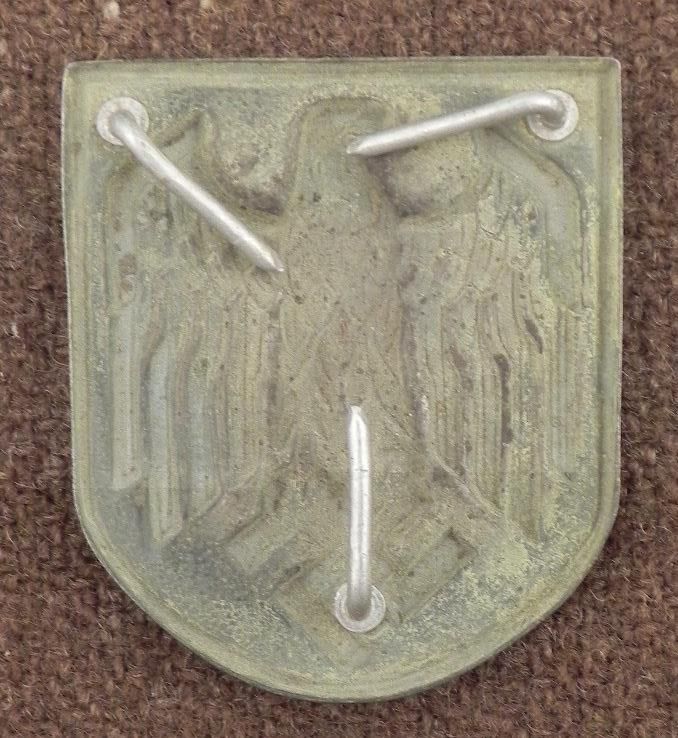 NAZI AFRIKA KORPS/AK PITH HELMET EAGLE & SWASTIKA SHIELD W/ALL 3 PRONGS *  * NICE ORIGINAL *