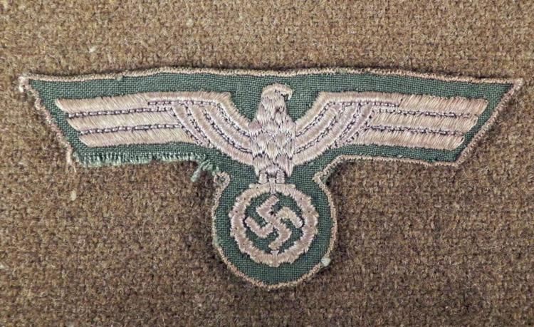 HERE IS A NAZI ARMY WEHRMACHT BREAST EAGLE FOR A UNIFORM WITH HAS A 4" WING SPAN. *