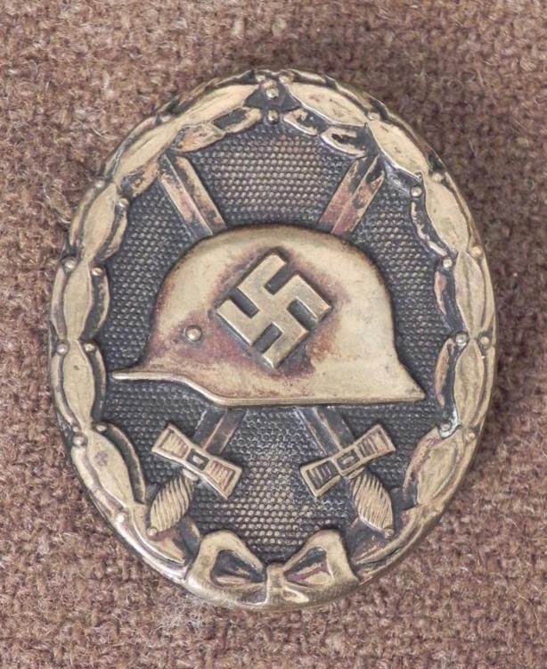 NAZI BLACK WOUND BADGE -PINBACK ORIG- * * FRONT IS WORN DOWN TO BRASS--HOLLOW BACKED BLACK WOUND BADGE *