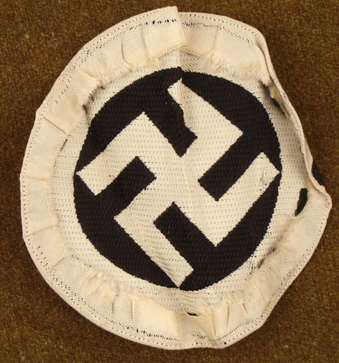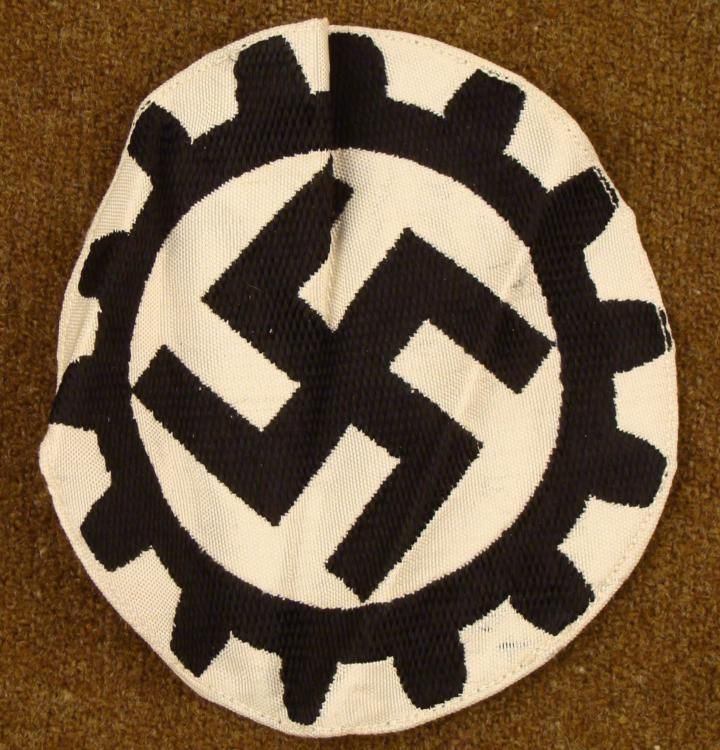 NAZI DAF/DEUTSCHE ARBEITS FRONT CENTER DISC FOR PENNANT-ORIGINAL-SILK & BEVO STITCH * NICE ORIGINAL PIECE-EARLY WAR & WELL MADE-DIAMETER: 3 1/2" *