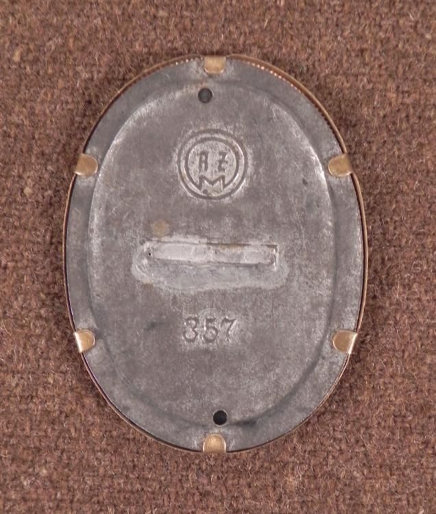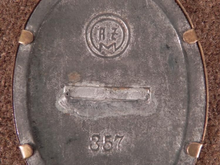 NAZI DAF-DEUTSCHES ARBEITFRONT VISOR BADGE-METAL&FABRIC. * 2X1.5"---FABRIC * CENTER HAS GOLD SWASTIKA IN GEAR WITH OAK LEAVES--REVERSE MARKED * RZM-357-ORIG-PIN NOT PRESENT ON REVERSE-NICE DISPLAY