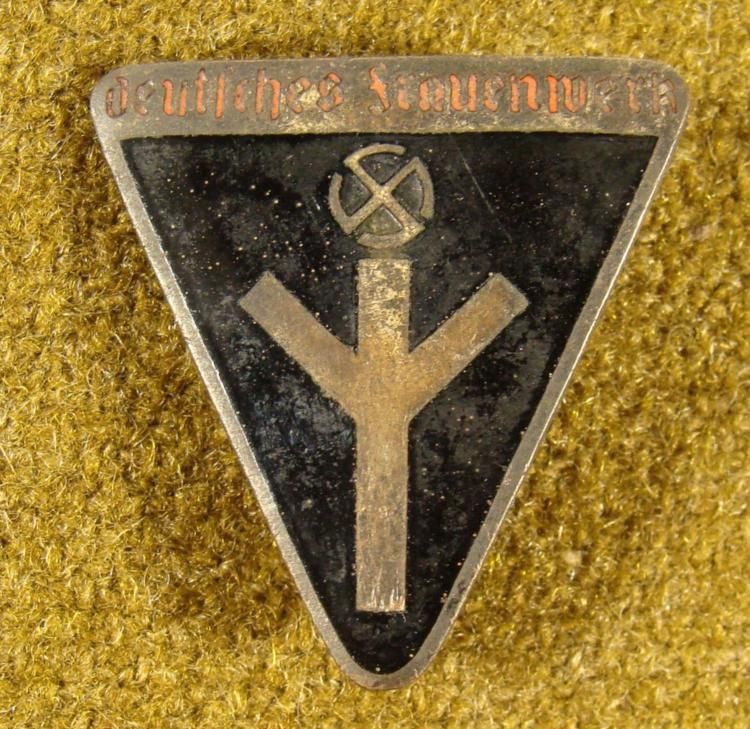 NAZI DEUTSCHEN FRAUENWERK MEMBERSHIP ENAMEL BROOCH--MARKED "M1/105" * SPRING PIN REVERSE *