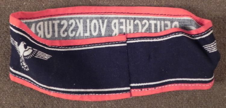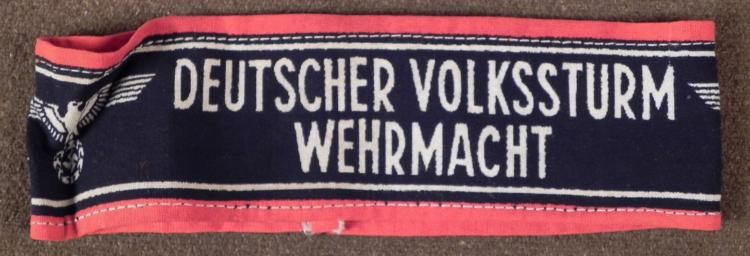 NAZI "DEUTSCHER VOLKSSTURM WEHRMACHT ORIGINAL ARMBAND-FOR NAZI ARMY CIVILIAN BACKUP * USED PRIMARILY TOWARD WARS END WHEN EVEN SENIORS TOOK UP RIFLES AGAINST THE ENEMY-SEWN TOGETHER WAS WORN *