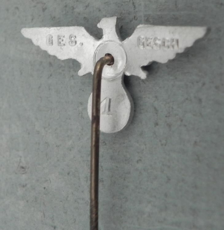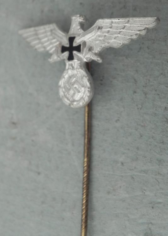 NAZI EAGLE/SWASTIKA/IRON CROSS MEMBERS STICKPIN-MKD-ORIG * * ORIGINAL-KNURLED PIN--MARKED GES GESCH-NICE HIGHLIGHTING TO SWASTIKA *