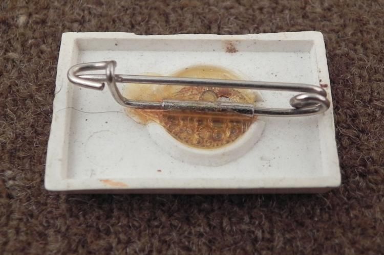 OFFERED HERE IS A NAZI ERA RED CROSS "HELFT UNS HELFEN" PINBACK BADGE. * *