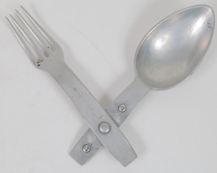 NAZI FIELD EATING RIG-SWIVEL FORK & SPOON-MARKED "G&CL40"ALUMINUM-GOOD CONDITION ORIGINAL