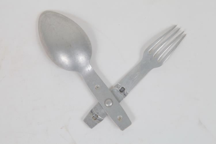 NAZI FIELD EATING RIG-SWIVEL FORK & SPOON-MARKED "G&CL40" ALUMINUM-GOOD CONDITION ORIGINAL