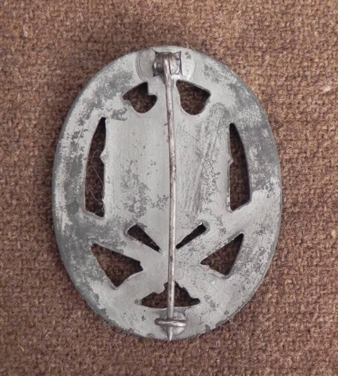 NAZI GENERAL ASSAULT BADGE FOR THE WEHRMACHT-GRADE 1-SOLID BACK-ORIG * * NICE NAZI ARMY GENERAL ASSAULT BADGE/ALLGEMEINES STURMABZICHEN--GETTING HARDER TO COME BY--NICE ORIGINAL-SOLID CONSTRUCTION TYPE--PIN BACK WITH CATCH *