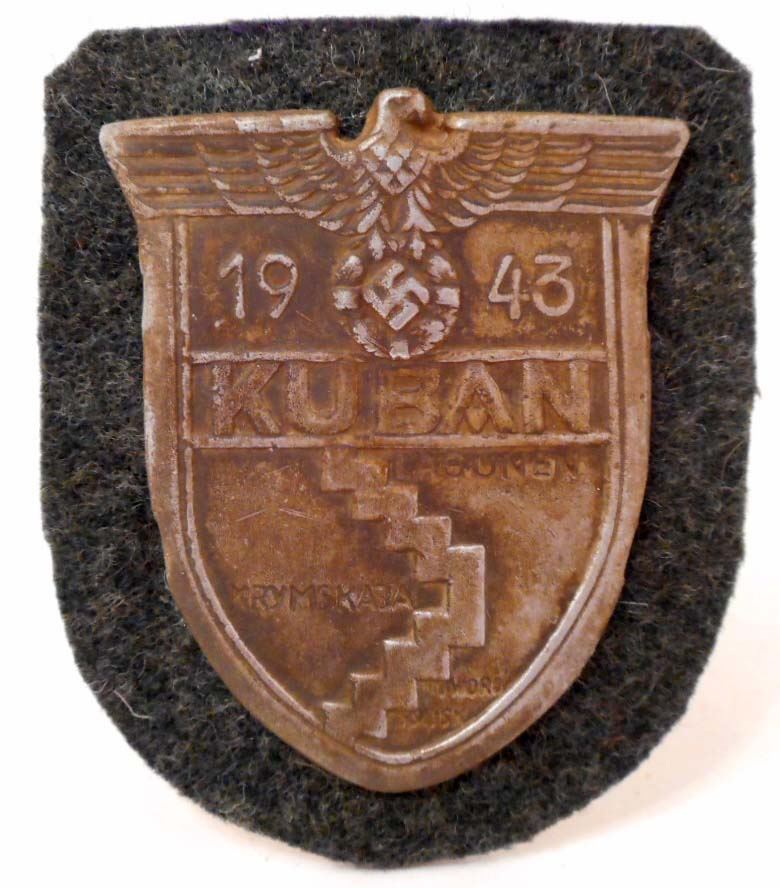 NAZI GERMAN KUBAN RUSSIA CAMPAIGN SHIELD GREEN WOOL BACKING