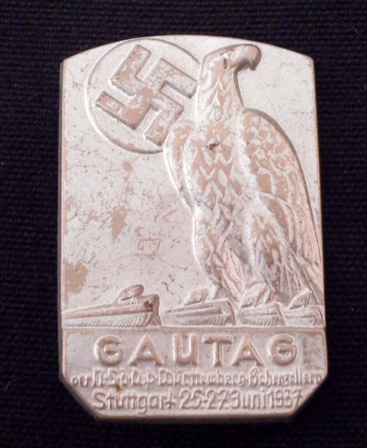 NAZI GERMAN STUTTGART GAUTAG TINNIE BADGE
