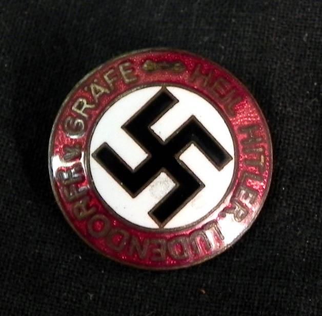 NAZI "HEIL HITLER LUDENDORF VON GRAFE MEDAL---REVERSE MARKED "RZM M1/73 GES GESCH"--FRONT RESEMBLES PARTY PIN WITH INSCRIPTION SURROUNDING SWASTIKA--POSSIBLY POST WAR