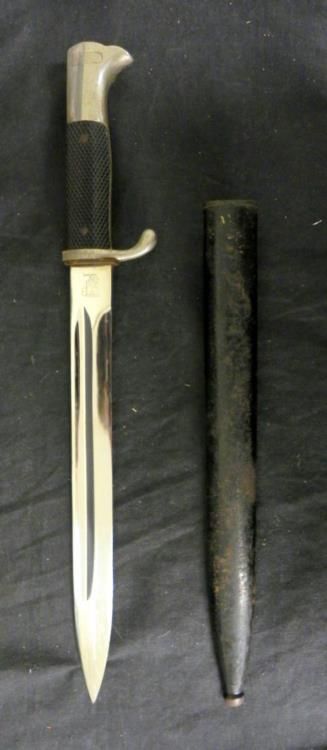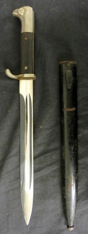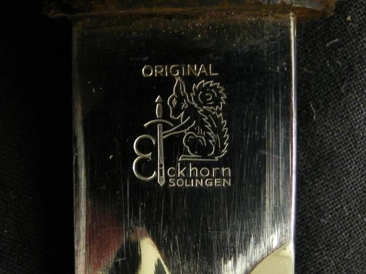 NAZI LONG DRESS BAYONET-EICKHORN-MIRROR BLADE-NICE CONDITION---GREAT LOOKING NICE ORIGINAL NAZI DRESS BAYONET FOR THE WEHRMACHT--10" BRIGHT BLADE--RICASSO MARKED "ORIGINAL EICKHORN-SOLINGEN" WITH SQUIRREL LOGO - EICKHORN IS THE CADILLAC OF NAZI EDGE WEAPO