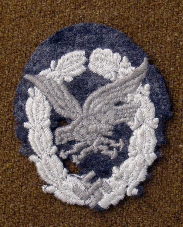 HERE IS A RARE ORIGINAL NAZI LUFTWAFFE AIR GUNNER PATCH. IT IS SILVER/GRAY ON WREATH WITH MOTH NIPS. *