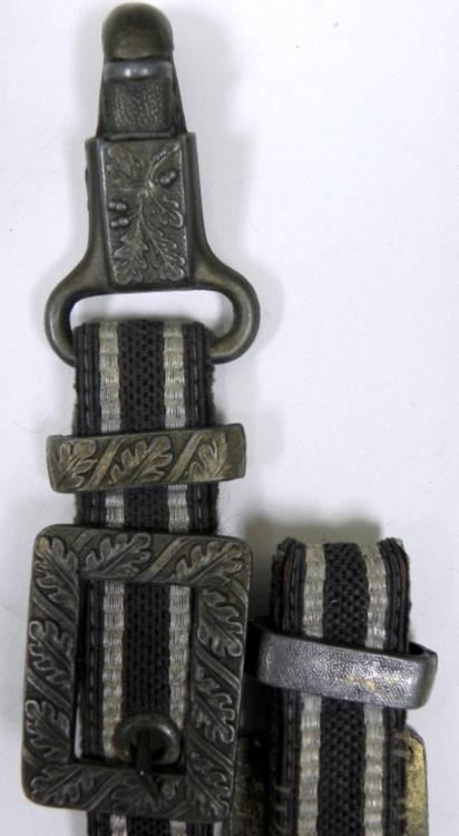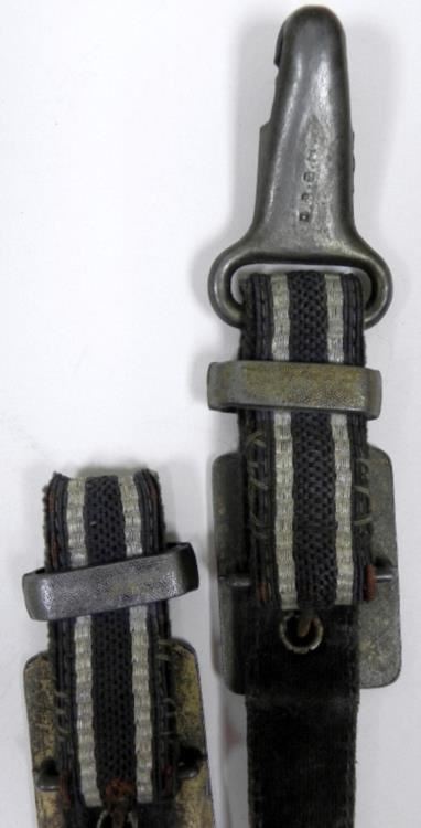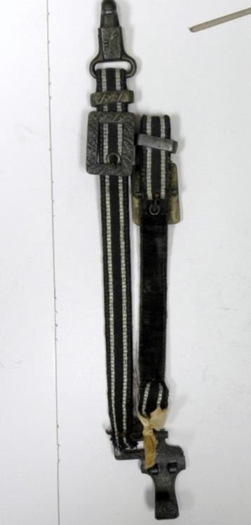 HERE IS A NAZI LUFTWAFFE DAGGER HANGERS-PARTS CONDITION. THE CLIP IS NOT PRESENT ON BELT ATTACHMENT OR ON SHORTER STRAP-SOLD AS A PARTS PIECE.
