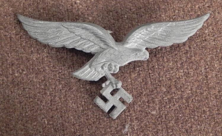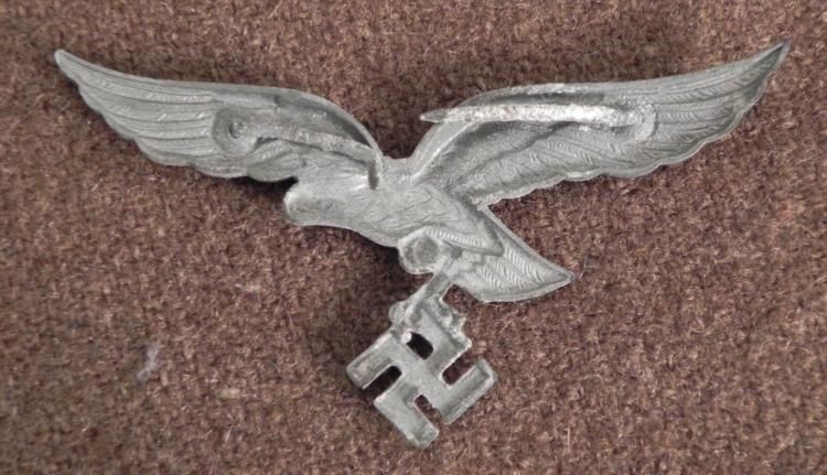 NAZI LUFTWAFFE WAR-TIME VISOR HAT EAGLE & SWASTIKA WITH PRONGS * * APPEARS TO HAVE BEEN PULLED OFF VISOR AS SOUVENIR *
