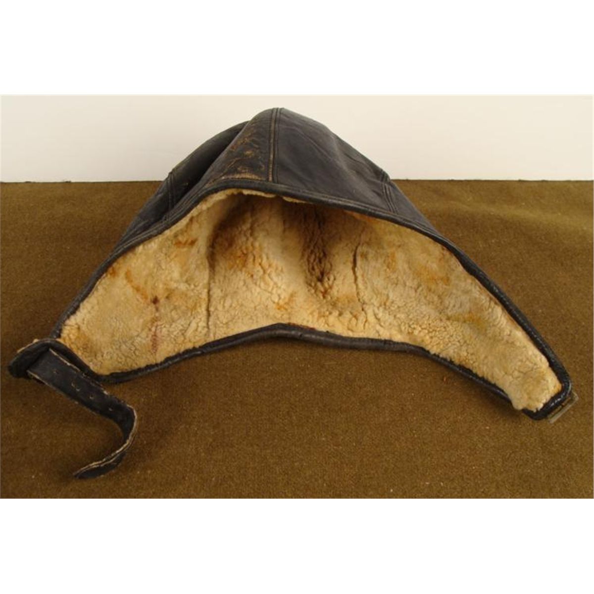 NAZI LUFTWAFFE WINTER LEATHER FLIGHT HELMET-LAMBS WOOL LINED * NICE ORIGINAL LUFTWAFFE LEATHER FLIGHT HELMET-SHOWS SOME WEAR FROM THE WAR-ONE SIDE SNAP IS SLIGHTLY PULLED FROM THE LEATHER-NOT DETRACTING-BELT 7 BUCKLE FRONT CLOSURE *
