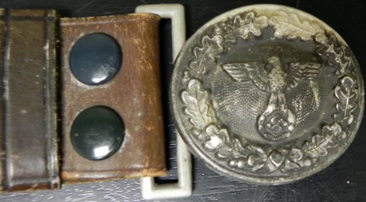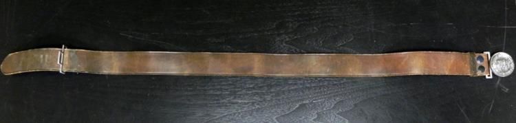 THIS IS A GREAT BRING BACK-OFFERED HERE ISNAZI FORESTRY OFFICIAL BELT BUCKLE--BROWN LEATHER-- WIDE BELT--ASSMANN "A" MARKED ON REVERSE OF BUCKLE
