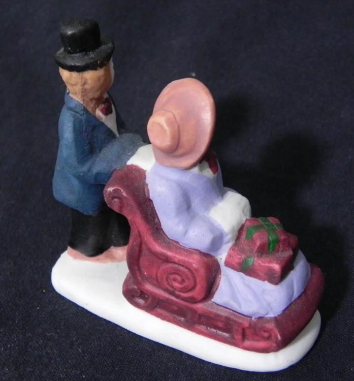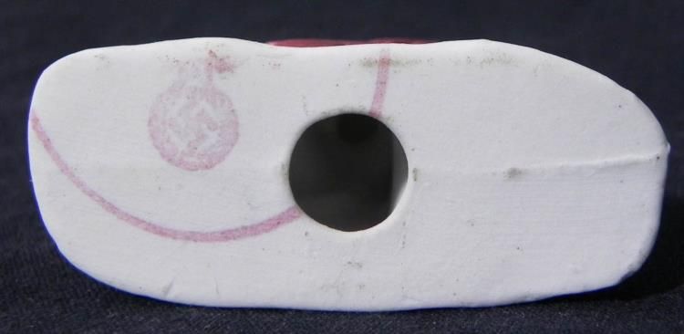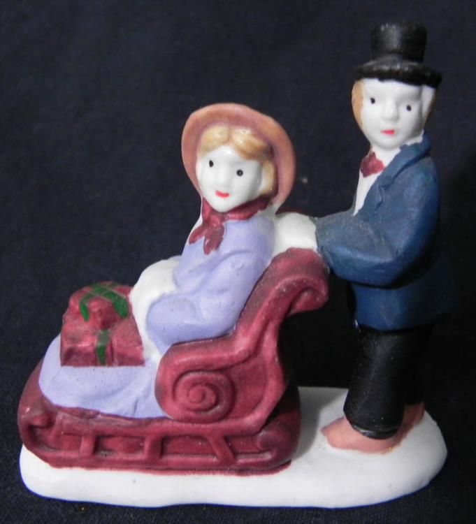 NAZI PORCELAIN MAN PUSHING WOMAN IN SNOW SLED-BOTTOM HAS SWASTIKA IN WREATH * * 2 1/4 X 2 1/4"--EX COND