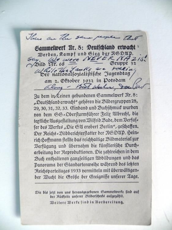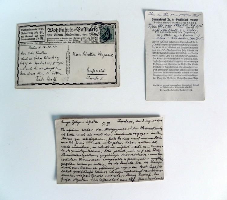 NAZI RALLY PIC + HINDENBURG PIC + WWI GERMAN POSTCARD---RALLY PIC (NAZI) HAS DESCRIPTION ON REVERSE