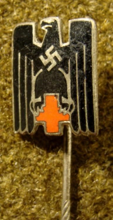 NAZI RED CROSS MEMBERS ENAMEL STICKPIN-PROPER KNURLED PIN * NICE ORIGINAL RARE BAYONET-WELL MARKED-CRUCIFORM BLADE-RARE LEATHER FROG WITH BUCKLE SHOWS BATTLE WEAR *