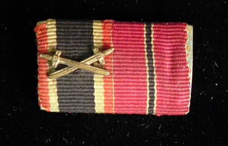 NAZI RIBBON BAR-ORIG-RUSSIAN FRONT & WAR MERIT W/SWORDS---PINBACK