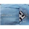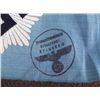 NAZI RLB ARMBAND-ORIGINAL-GERMAN AIR PROTECTIVE LEAGUE W/OSTGRUPPE STAMP * RARE ORIGINAL BRINGBACK-ONE OF THE MOST ATTRACTIVE NAZI ARMBANDS ALSO--BLUE IN COLOR WITH A WHITE EMBROIDERED MOBILE SWASTIKA IN BLACK ON CENTER,--STAMP OF EAGLE & SWASTIKA AND READS "REICHSLUFTSCHUTZVERBAND-ORTSGRUPPE KREUZNAU"-REVERSE IS EMBROIDERED "BEVO WUPPERTAL"