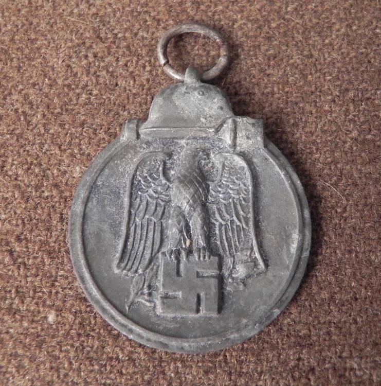 NAZI RUSSIAN FRONT MEDAL-EAGLE/SWASTIKA/HELMET/POTATO MASHER * REVERSE READS "WINTERSCHLACHT MOSTEN-1941-42"-AWARDED TO SOLDIERS THAT SURVIVED THE RUSSIAN/NAZI BATTLE
