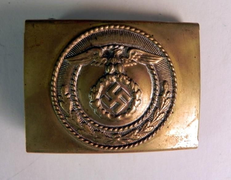 NAZI SA-STORMTROOPERS BELT BUCKLE-ORIG-TYPE 3---ORIGINAL SA BUCKLE TYPE 3-1929-1936---SOLID BRASS-ROTATED SWASTIKA