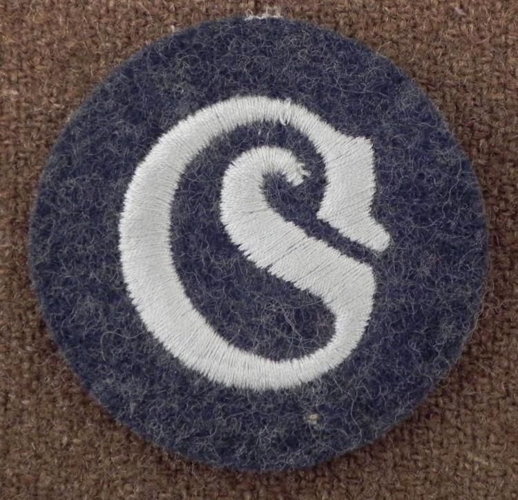 THIS IS AN ORIGINAL NAZI SCHIRRMEISTER "SPEC" PATCH, EQUIPMENT ADMIN PERSONNEL- WEHRMACHT. THE PATCH HAS THE GOTHIC "S" ON FRONT. * * * *