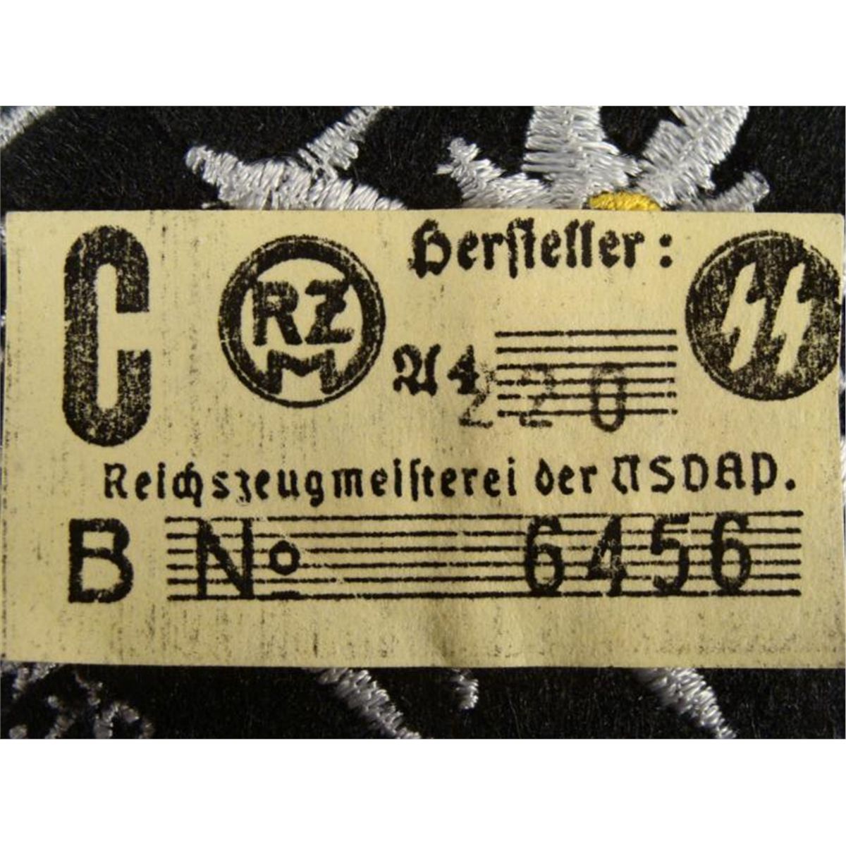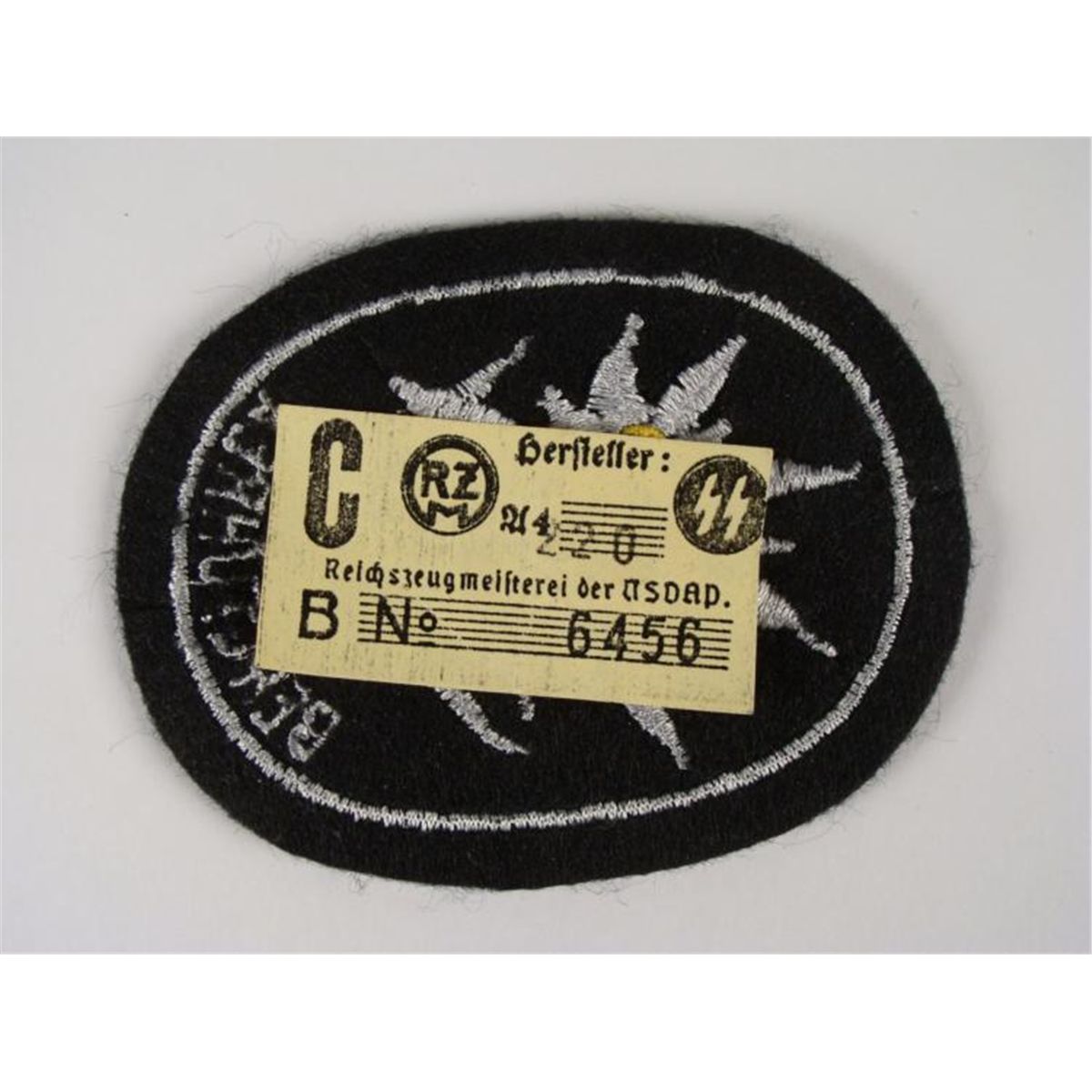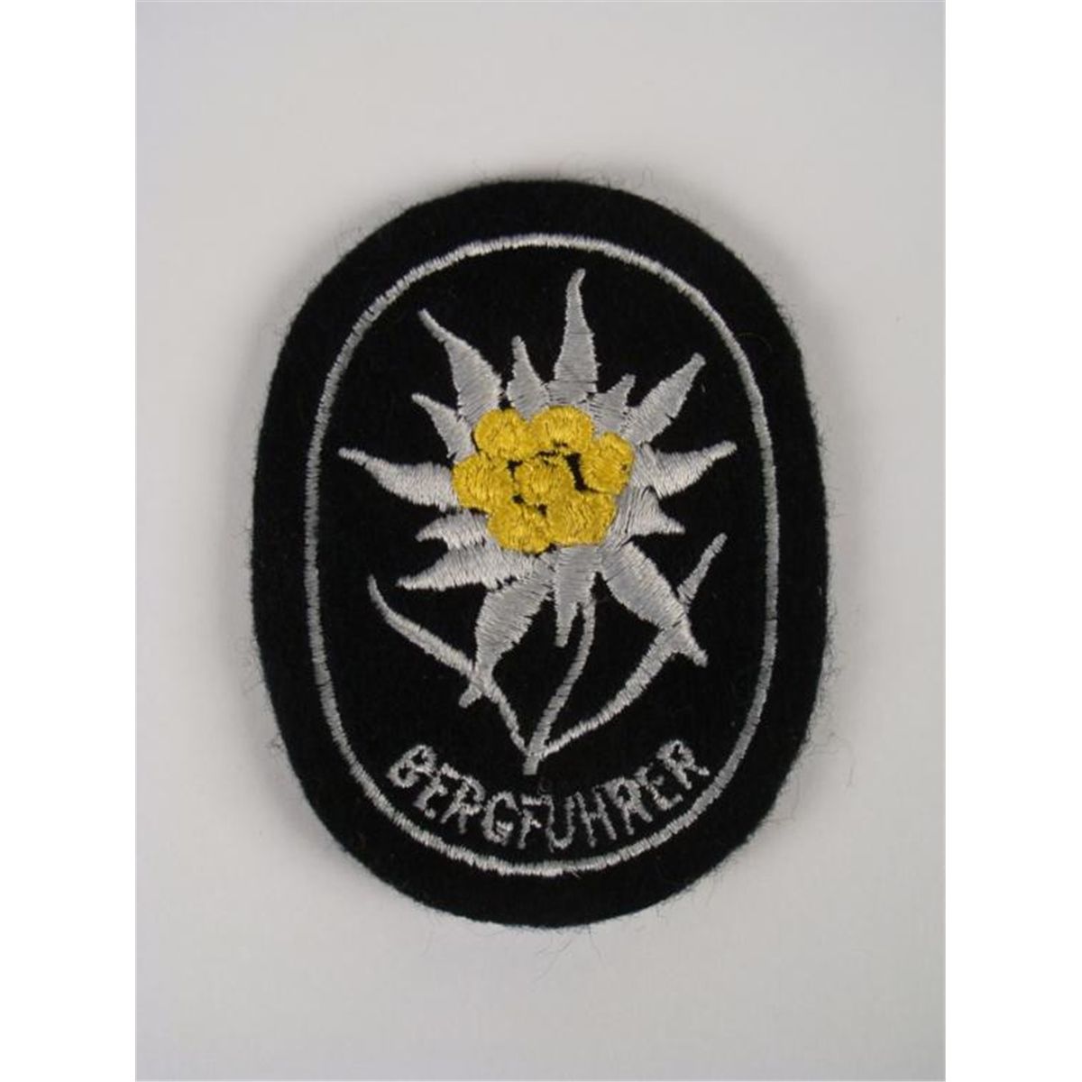 NAZI SS BERGFUHRER PATCH W/EDELWEISS & SS RZM TAG ON REVERSE * RARE SS MOUNTAIN TROOPS LARGE WOOL UNIFORM SLEEVE PATCH--BLACK WITH LARGE EDELWEISS FLOWER AND READS "BERGFUHRER" WITH SS RZM ISSUE TAG THAT IS #'D ON REVERSE *