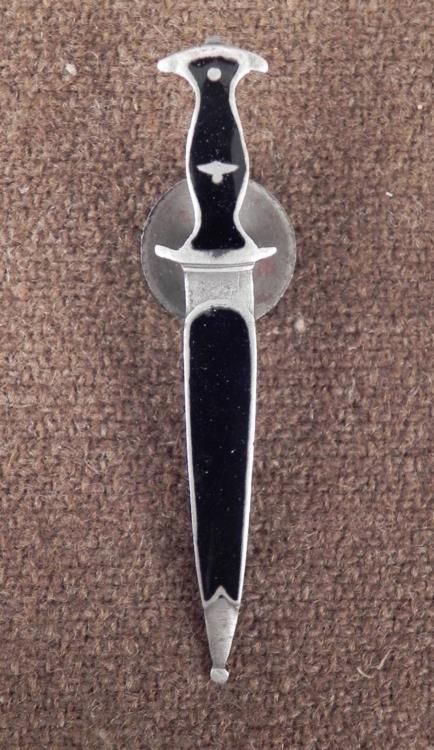 NAZI SS DAGGER LAPEL PIN-SCREW BACK-ENAMEL & SILVER-MARKED * 2 1/2" IN LENGTH--REVERSE MARKED "II.L 0.23/R.R./ES." *