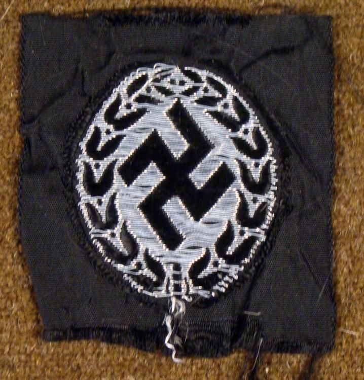 OFFERED HERE IS A NAZI SWASTIKA IN WREATH PATCH. IT HAS SILVER THREADS ON BLACK AND IS A 2" SQUARE. *