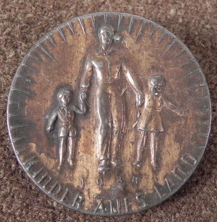 NAZI TINNIE--CHILDREN IN OUR COUNTRY--SHOWS DAD WITH CHILDREN-PINBACK * *