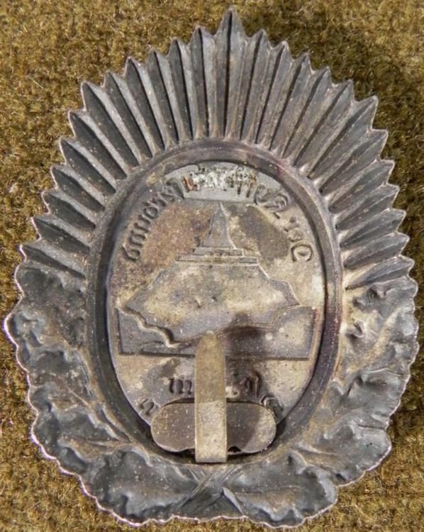 NAZI VETERAN LEADERS STARBURST MEDALLION FOR ARMBAND-FROSTED SILVER & BLACK * 1 1/2" X 2"--1 PRONG ON REVERSE *