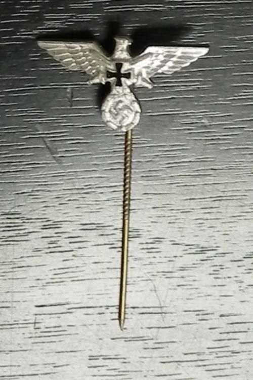 OFFERED HERE IS A NAZI VETERANS STICKPIN--ORIG-MINT-W/EAGLE,SWASTIKA & IRON CROSS. THIS IS A NICE ORIGINAL PIECE--REVERSE MARKED "7" AND GES GESCH.