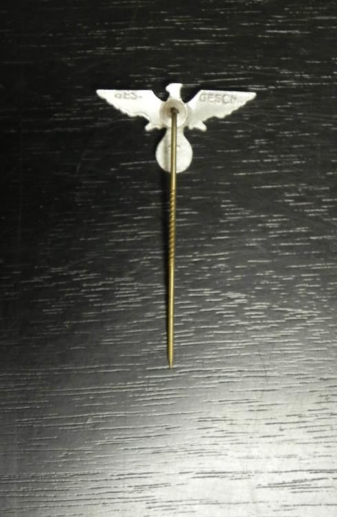OFFERED HERE IS A NAZI VETERANS STICKPIN--ORIG-MINT-W/EAGLE,SWASTIKA & IRON CROSS. THIS IS A NICE ORIGINAL PIECE--REVERSE MARKED "7" AND GES GESCH.